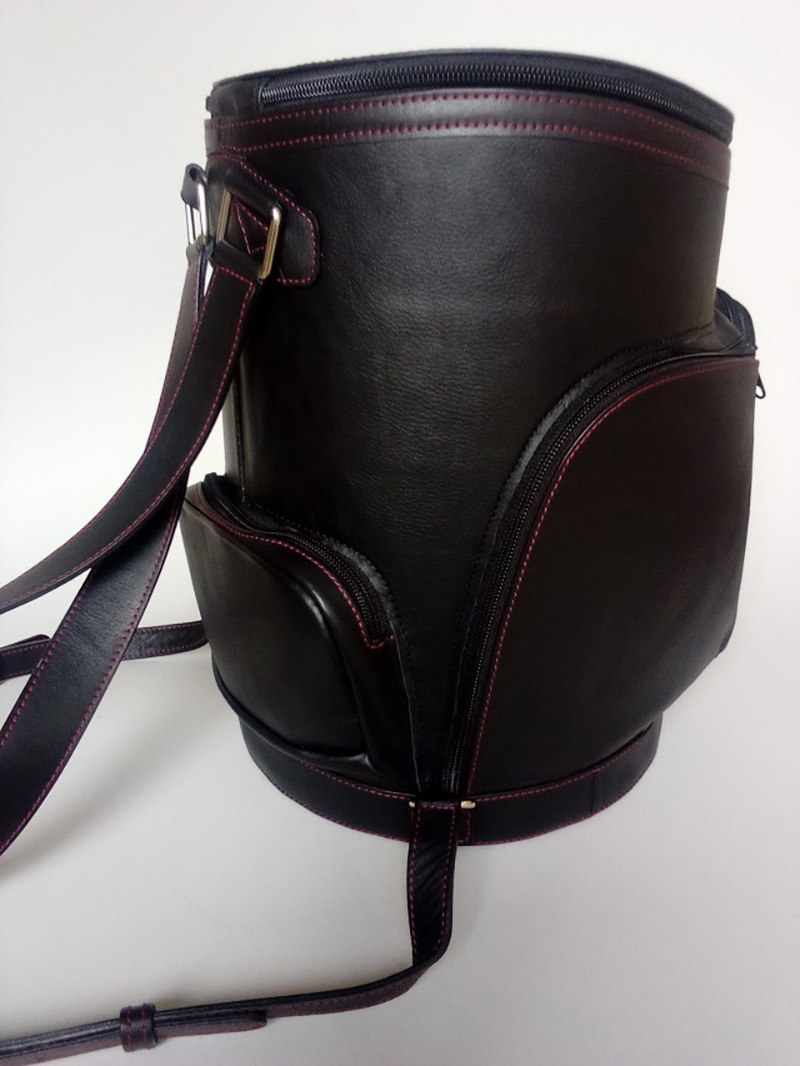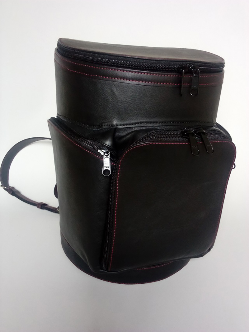 ゴルフ好きのお客様よりの依頼です。普段使い用のバックにゴルフバッグの形の物が欲しいとの事で、リュックタイプを製作しました。中にタブレットが入るポケットが有ります。
